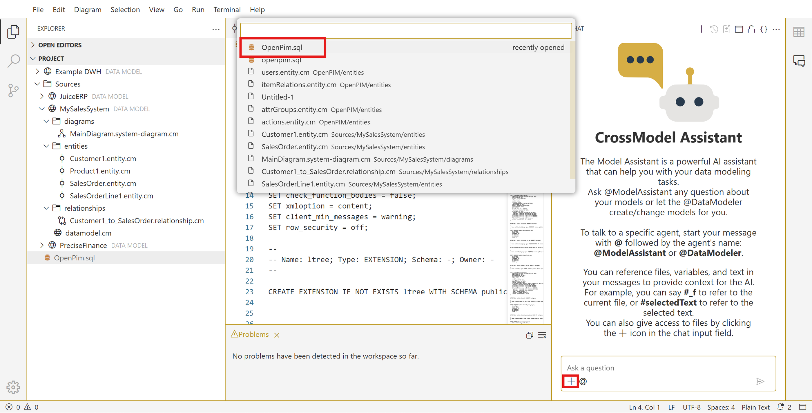 In the previous exercise we have created a logical datamodel using the basic features of CrossModel. In this exercise we'll use the AI modeling assistant to explore other options for creating data models.
