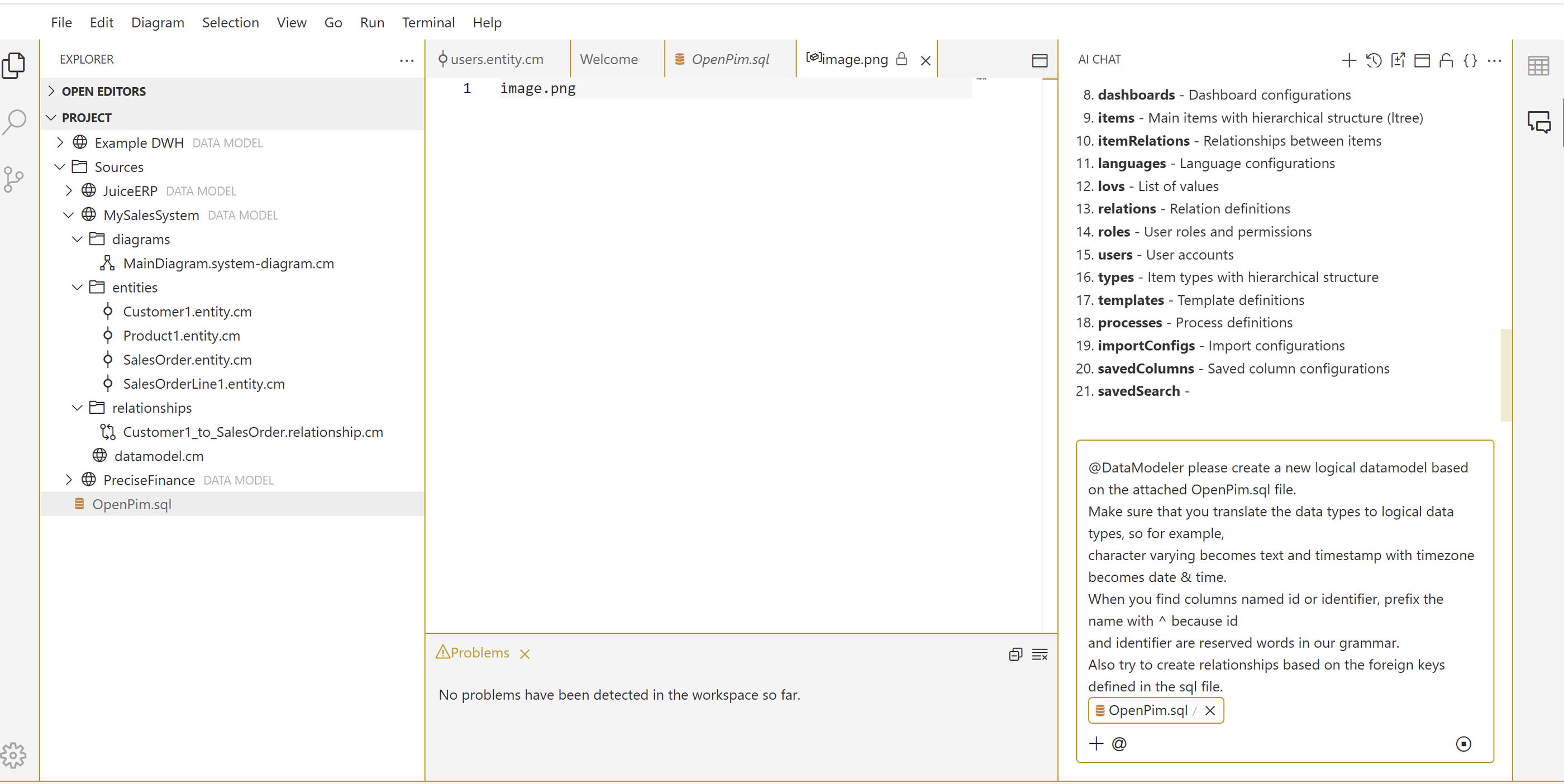 @DataModeler Create a new logical datamodel based on the attached OpenPim.sql