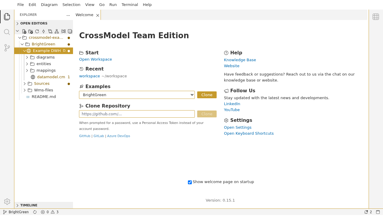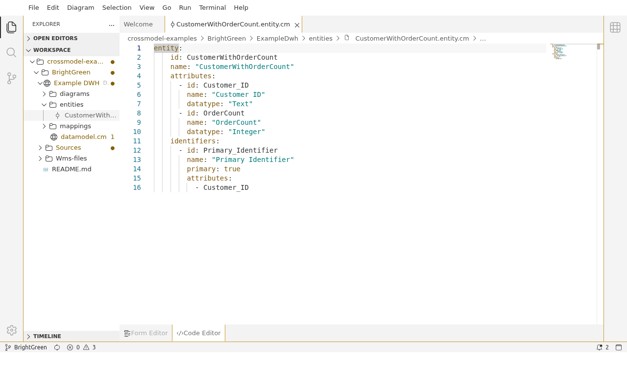 - Explorer (left) - Navigate your models, entities, diagrams, and other files.
