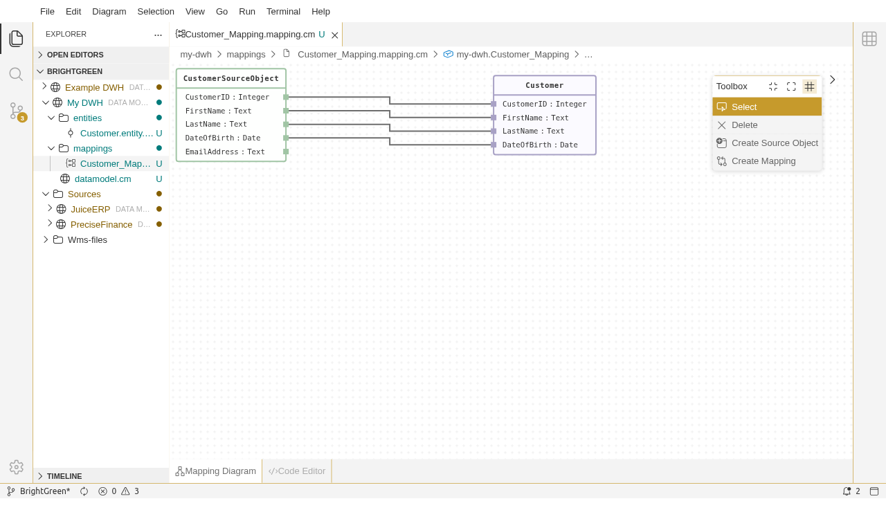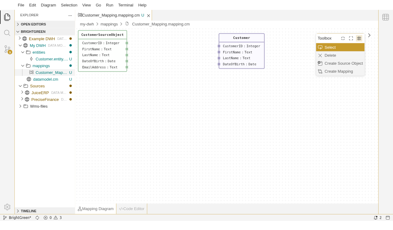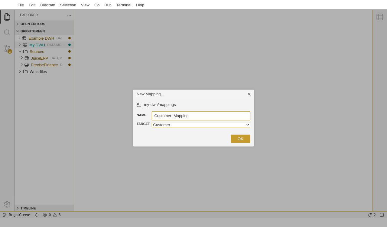 We 'll use the second option for now, select the ExampleDWH model in the explorer and press the new mapping button: