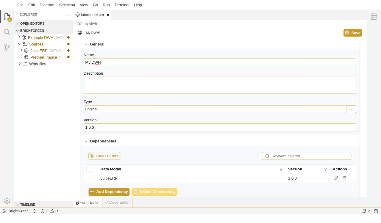 We start with creating a new logical data model like we did before. This time we also include dependencies to the other two models in the workspace: